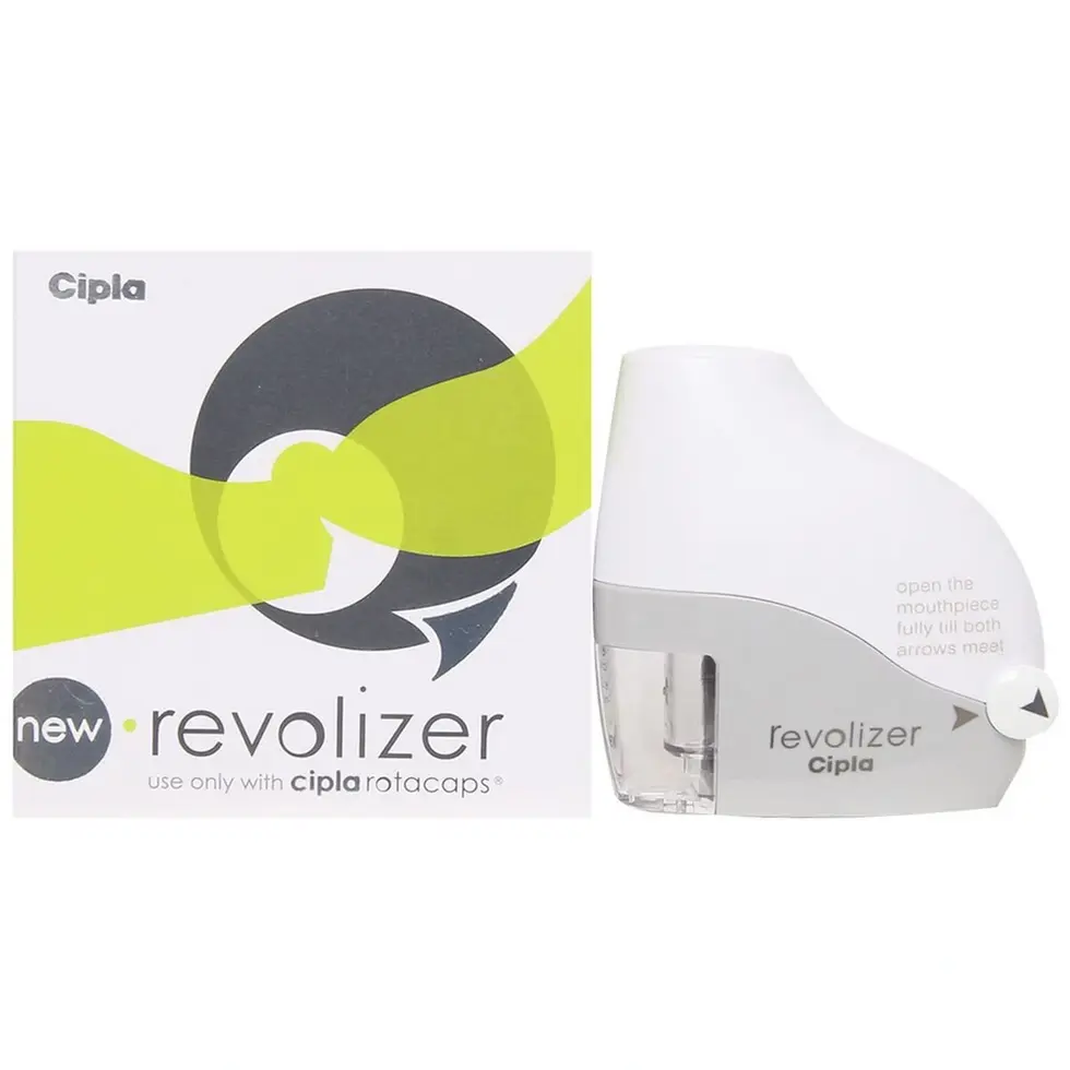 Revolizer Device Revolizer Device is a cost-effective, user-friendly, and environmentally friendly solution for managing lung-related concerns through the inhalation of dry medication powder. It simplifies pulmonary drug delivery, making it suitable for controlling and managing concerns associated with asthma. With its clear transparent display of the rotacap, it allows you to receive the full benefits of the medication. Using the device is a breeze simply insert the rotacap, close it, and inhale.